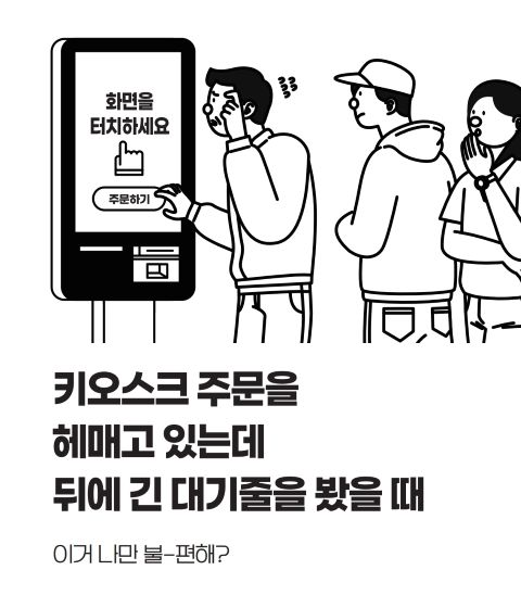 | _키오스크 주문을 헤매고 있는데 뒤에 긴 대기줄을 봤을 때_. 감싸롱 팝업에 있는 일상의 불편함이 적힌 문구. |