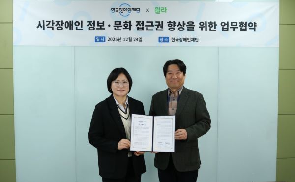 한국장애인재단과 통합 독서 플랫폼 윌라를 운영하는 인플루엔셜이 24일 오전 10시, 시각장애인의 정보·문화 접근권 향상을 위한 업무협약을 체결했다.