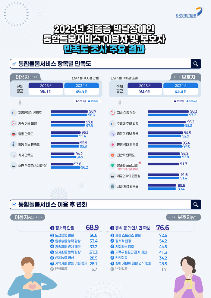 이번 조사는 최중증 발달장애인 통합돌봄서비스를 3개월 이상 이용한 발달장애인 648명과 보호자 530명을 대상으로 2025년 11월 6~28일까지 진행됐다.